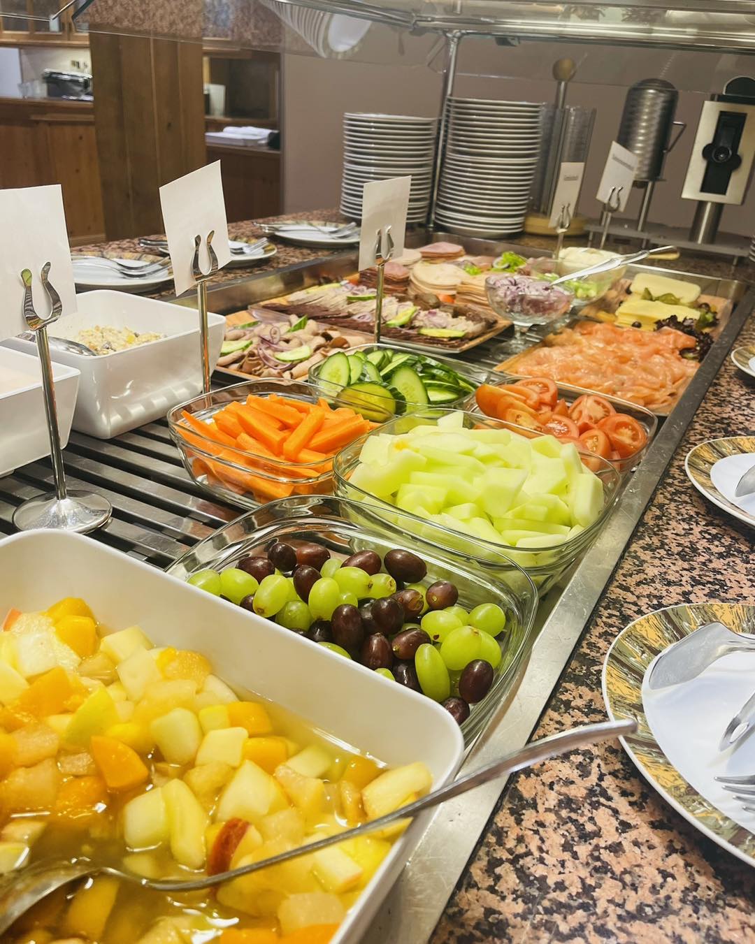 Genießen Sie nach Herzenzlust von unserem abwechslungsreichen Frühstücksbuffet. Dazu gibt es verschiedenen Heißgetränke, Säfte und Wasser.